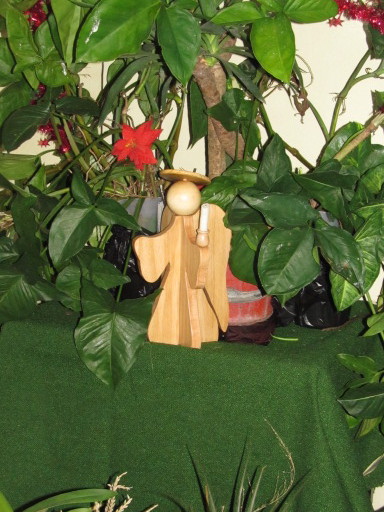 This year I got to experience the creation of the Nativity at the Pastoral House. The Nativity took several hours to create and I was able to help with a couple things as well as capture the process with photos. The emphasis in many Nativities in El Salvador is on living plants. I watched as Blanca and Jesús dragged all sorts of plants into the chapel from the back yard. I went around the yard searching for rocks. We unpacked a couple boxes where things are stored for the Nativity and also placed a couple new pieces in the Nativity.
